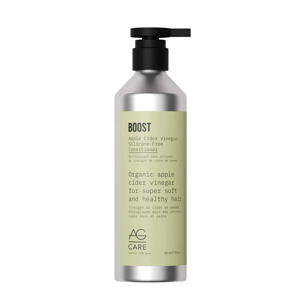Formulated with over 98% natural, plant-based ingredients, AG Care's Boost Conditioner combines coconut oil, mango seed butter, rapeseed oil, rosehip oil, olive extract, shea butter and hydrolyzed quinoa with the many benefits of organic apple cider vinegar to nourish, detangle, soften cuticles and seal in moisture. A blend of rosemary, lemongrass, clary sage and vanilla essential oils provide natural fragrance and aromatherapy benefits. Ideal for all hair types, perfect for color treated hair. Vegan and cruelty-free. Free of sulfates, gluten, DEA, Paba, parabens and DMDMH.
