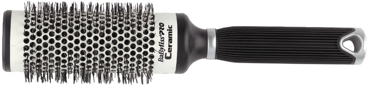 Ceramic eliminates frizz and creates silky, smooth hair, evenly spreads and holds heat longer, so hair dries faster. Nylon bristles and ridged rubber handle.
