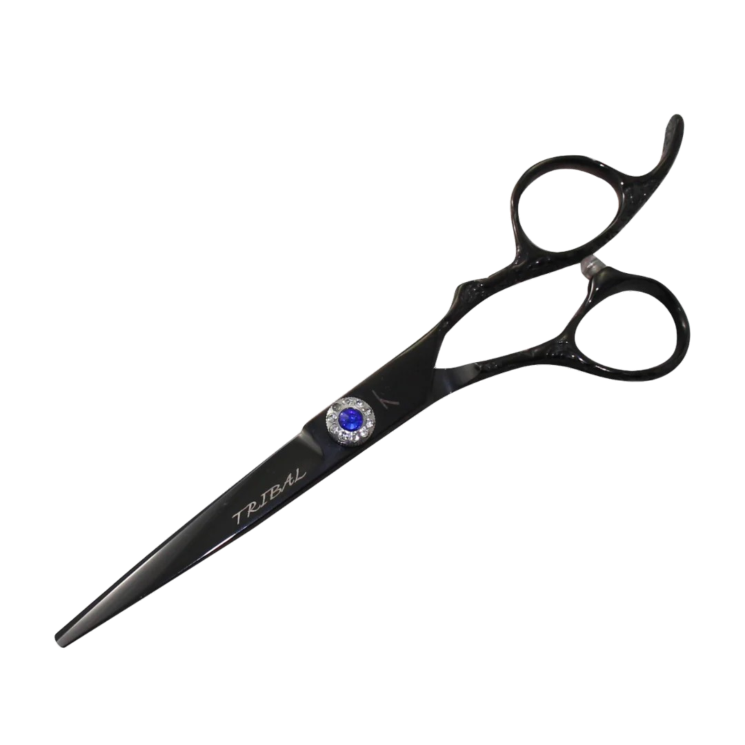 This scissor features an offset handle with an ergonomic thumb rest curved downward to provide comfort for your shoulder and wrist. Its molded finger rest ensures hand stability. Equipped with a 9cr13 steel blade, this model is highly versatile for both straight cuts and thinning techniques. Its engraved handle and black color give it a truly stylish look.